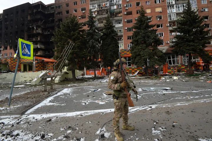 2月7日,一名乌克兰士兵在波克罗夫斯克巡逻警戒。新华社