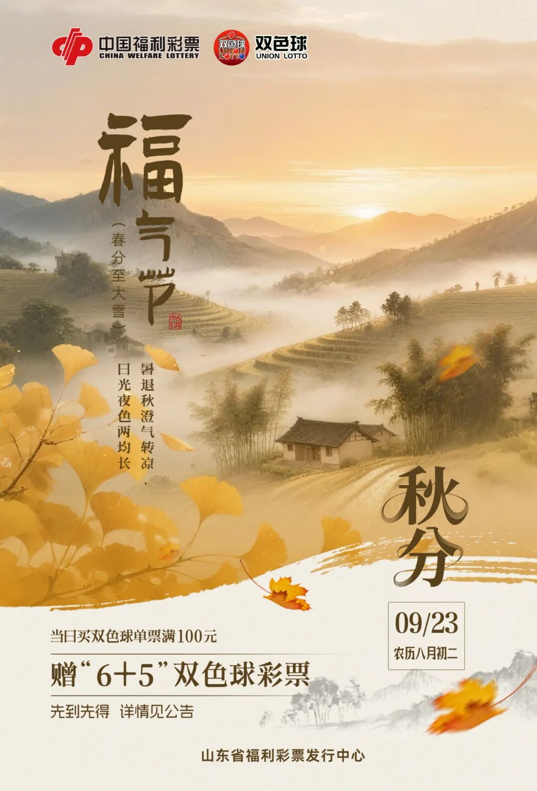 这个“福气节”,与节气同行,让福气加倍!秋分是收获的时节,山东福彩陪伴您度过一个好运满满的秋天!