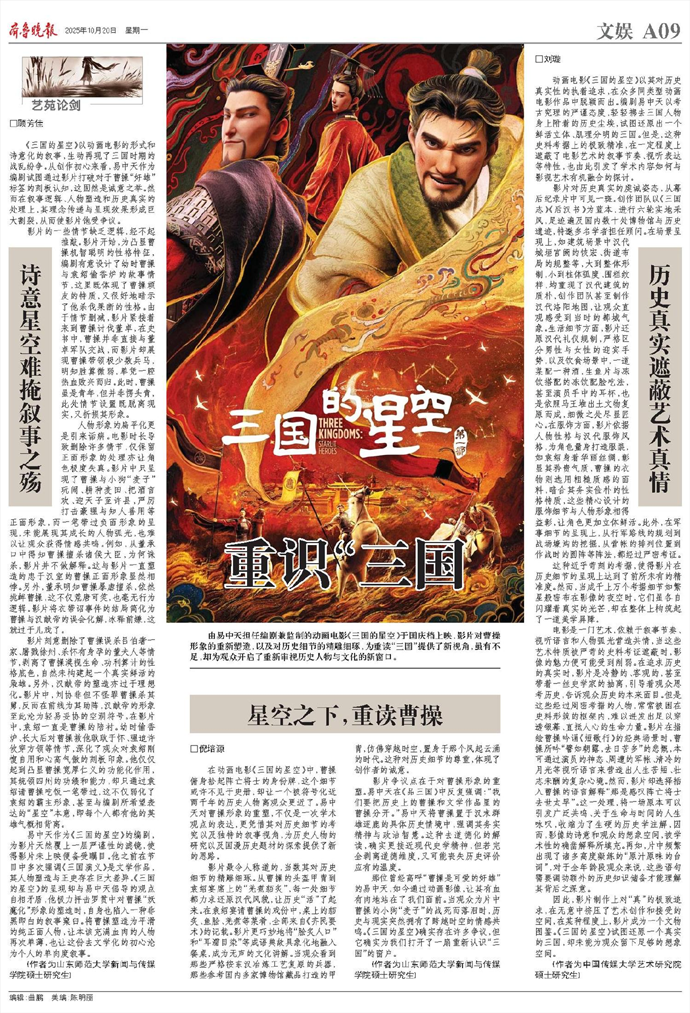 由易中天担任编剧兼监制的动画电影《三国的星空》于国庆档上映,影片对曹操形象的重新塑造,以及对历史细节的精雕细琢,为重读“三国”提供了新视角,虽有不足,却为观众开启了重新审视历史人物与文化的新窗口。