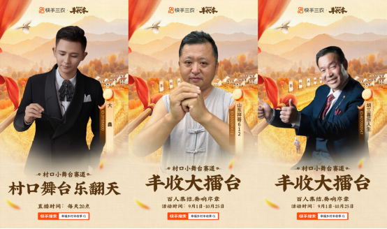 今年以来,快手三农则推出了“村口小舞台”活动,通过流量补贴、运营支持等政策,鼓励创作者在农闲时期举办乡村文娱小舞台。活动以“线下搭台+线上直播”的模式,既为深藏乡土、身怀绝技的草根文娱爱好者搭建绽放光芒的舞台,也为日常辛劳的村民带来触手可及的欢乐时光,更将独具特色、濒临遗忘的民间习俗和传统才艺推向大众的视野。