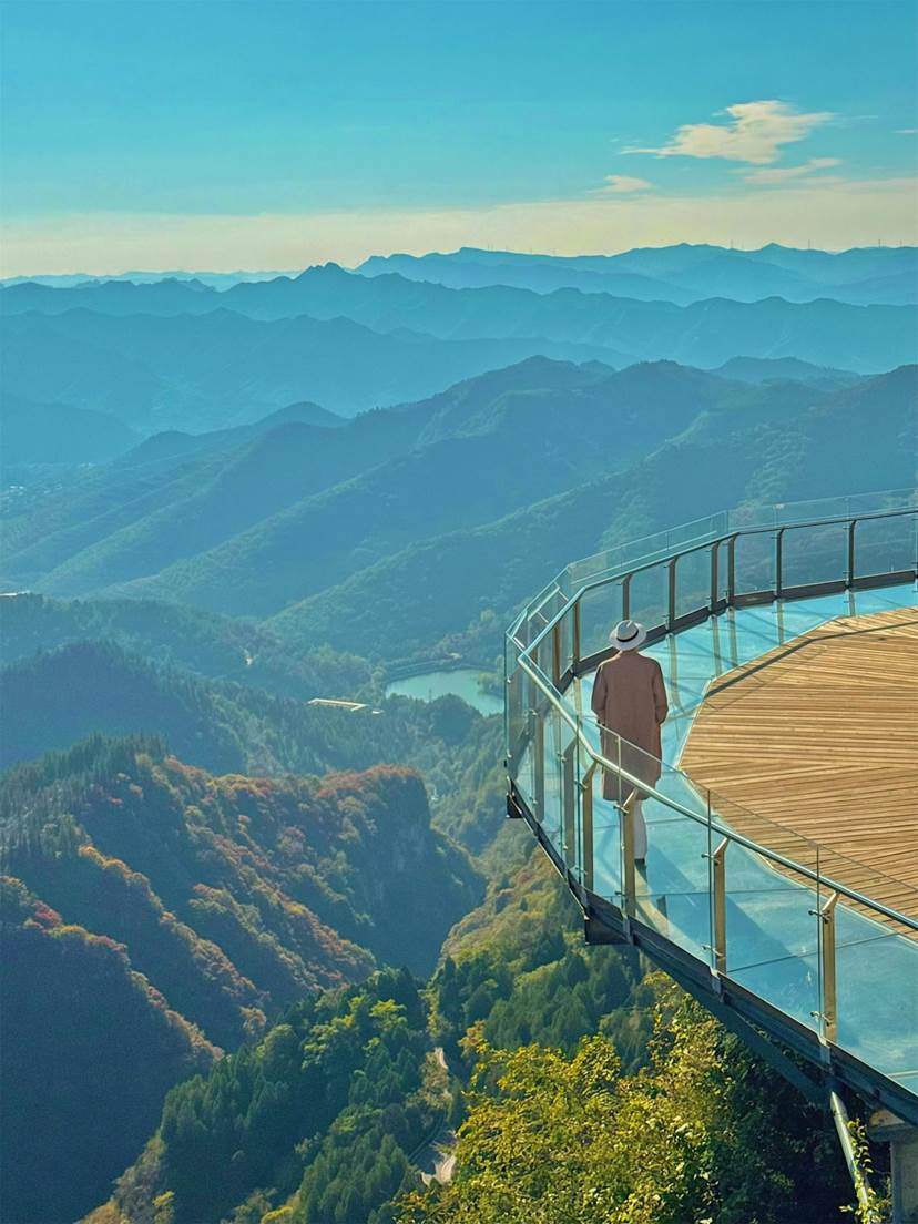 在高空玻璃桥上,俯瞰层峦叠嶂,坐拥大好河山;