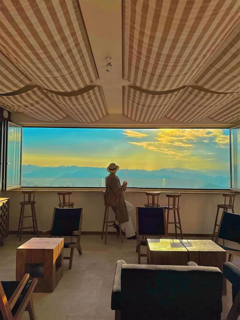在“雾·云麓Cloud ridge”悬崖咖啡厅,手捧一杯特调饮品,远望美女峰;