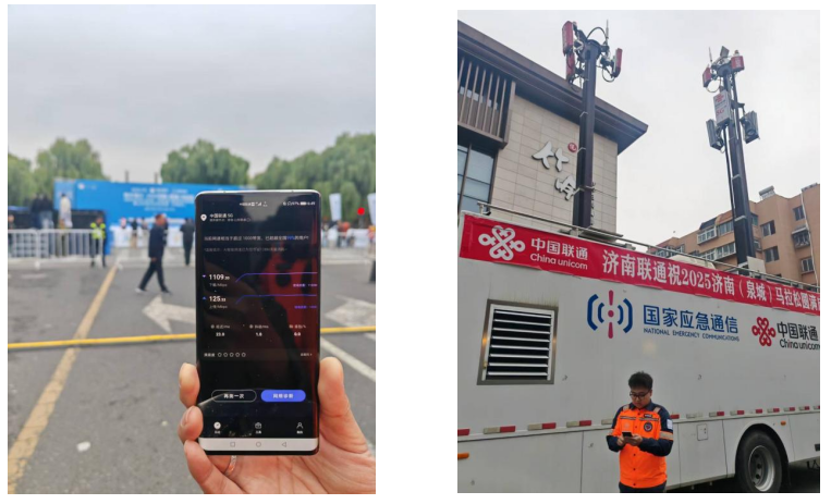 赛前筹备阶段,无线网络优化人员沿42.195公里赛道开展多轮勘察测试,重点排查大明湖起点、黑虎泉观景区、经十路CBD段等人员密集区域的信号覆盖情况。通过4G/5G CQT测试与上下行速率测试,精准定位弱覆盖点位,实施集中优化与扩容。针对赛事起点大明湖与终点奥体中心这两个核心区域,联通不仅在原有4G/5G覆盖基础上微调参数,更紧急调配两辆应急通信车提前进场驻扎,确保媒体直播与组委会指挥信号稳定。同时,技术人员对沿线基站机房、光缆线路等设备进行无死角排查,为赛事通信筑牢"硬件基础"。