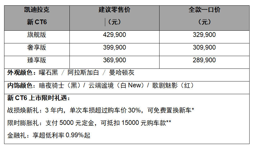 百年积淀,阅尽千帆,凯迪拉克的豪华初心始终如一。新CT6携百万级傲人气场、百万级精奢用料,百万级磁浮底盘以及百万级安全标准,树立豪华旗舰的全新标杆。即日起,用户可前往当地经销商或者登录凯迪拉克官方App、小程序以及抖音“凯迪拉克尊选”直播间下订新CT6,即刻开启执掌人生的新征程。