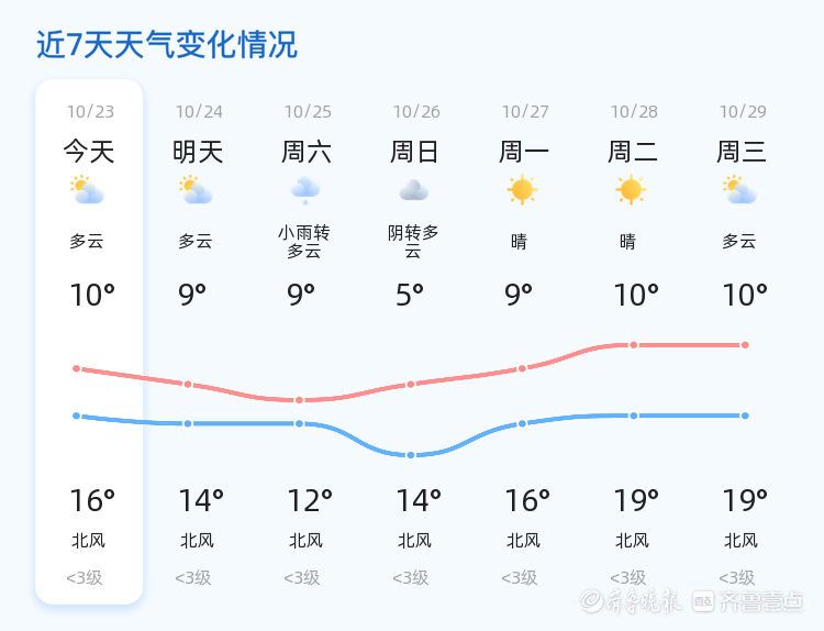 未来三天,菏泽市天气趋势如下周六(10月25日)有小雨转多云,气温9℃至12℃;周日(10月26日)阴转多云,气温5℃至14℃;周一(10月27日)至周三(10月29日)天气晴或多云,气温逐步回升至19℃。市民需关注天气变化,合理安排出行计划,尤其注意周六的小雨天气,出行时请携带雨具,注意交通安全。
