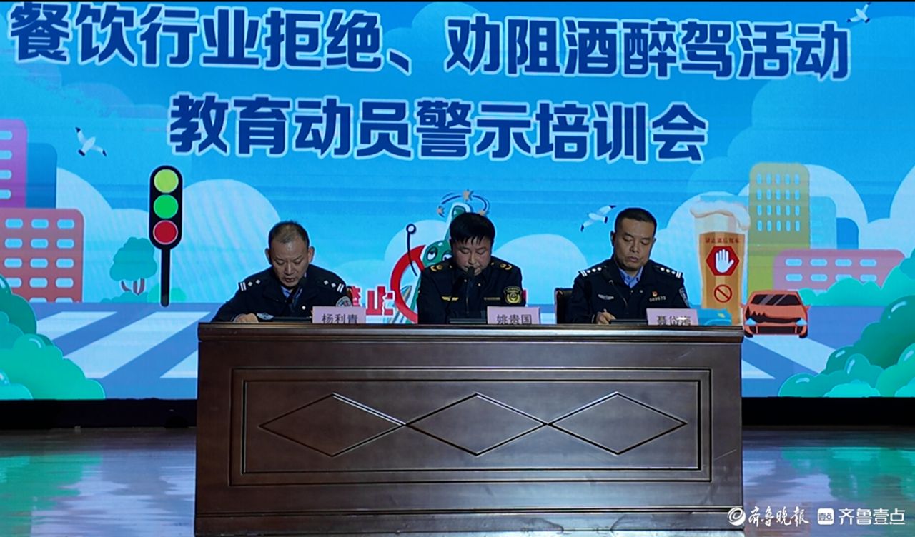 会议结束后,县交管大队城区中队负责人王方勇开展了以“拒绝、劝阻酒醉驾”为主题的专题警示教育培训,播放了交通事故警示片,结合事故发生规律与特点,从法律规定、劝阻技巧、代驾服务衔接等方面进行了以会代训,传播安全文明驾驶常识、传授文明劝导技巧,受到与会人员热烈回应。县交管大队发起组建的阳谷县交通安全公益联盟精心制作了一批店堂陈列的交通安全宣传展架,并由阳谷日辉电缆集团出资独家支持,在县城区各大中小饭店、机关单位、人员密集场所长时间摆放展示,营造劝导氛围。会议发放警示提示酒醉驾桌贴、墙贴、摆件等宣传品10000余份,组建了餐饮从业人员拒绝、劝阻酒醉驾协调群,根据餐饮企业需求,继续提供相应警示物品,营造劝阻氛围。