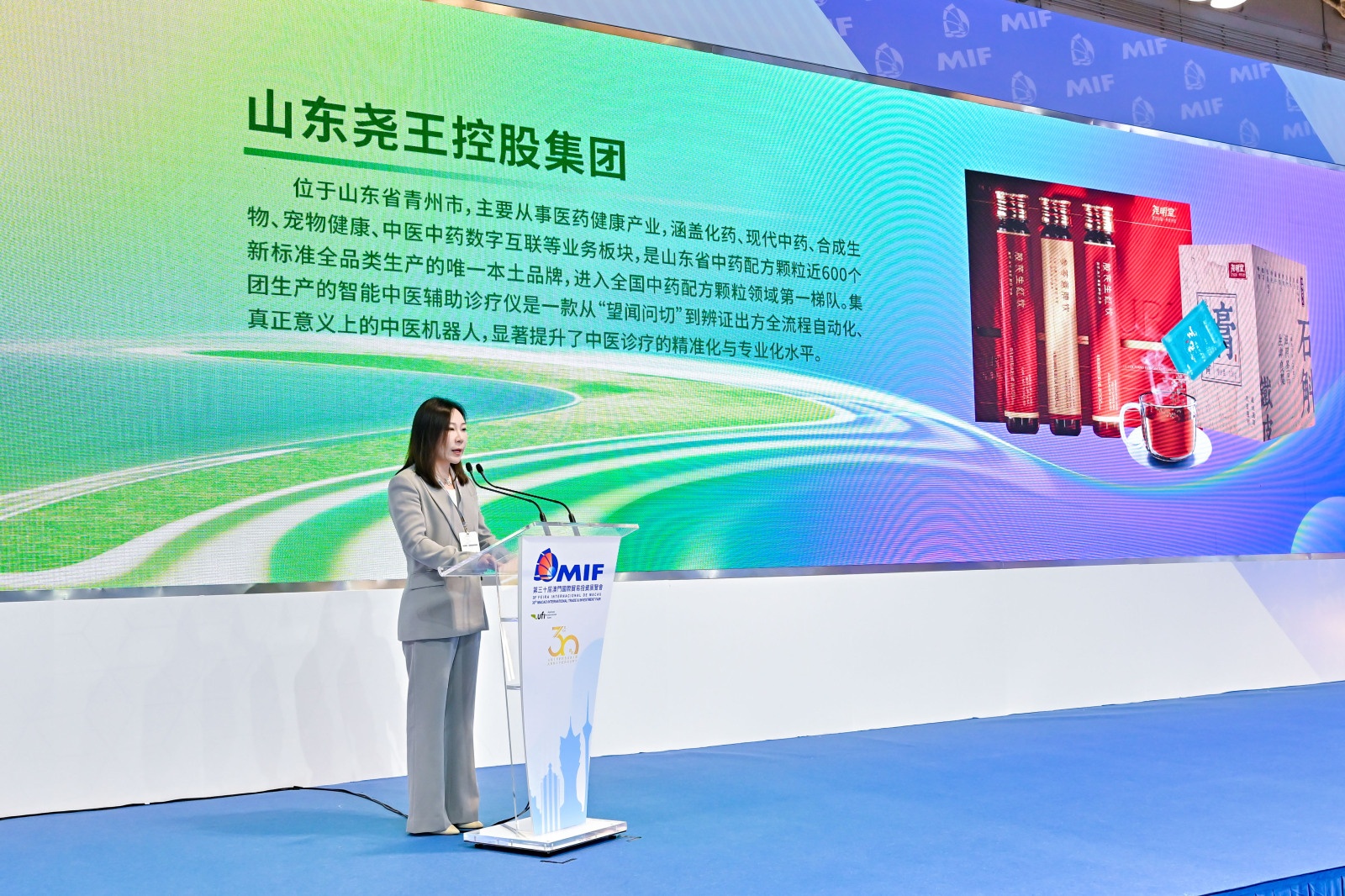 山东尧王控股集团有限公司总裁宗剑飞进行中医药产品推介。