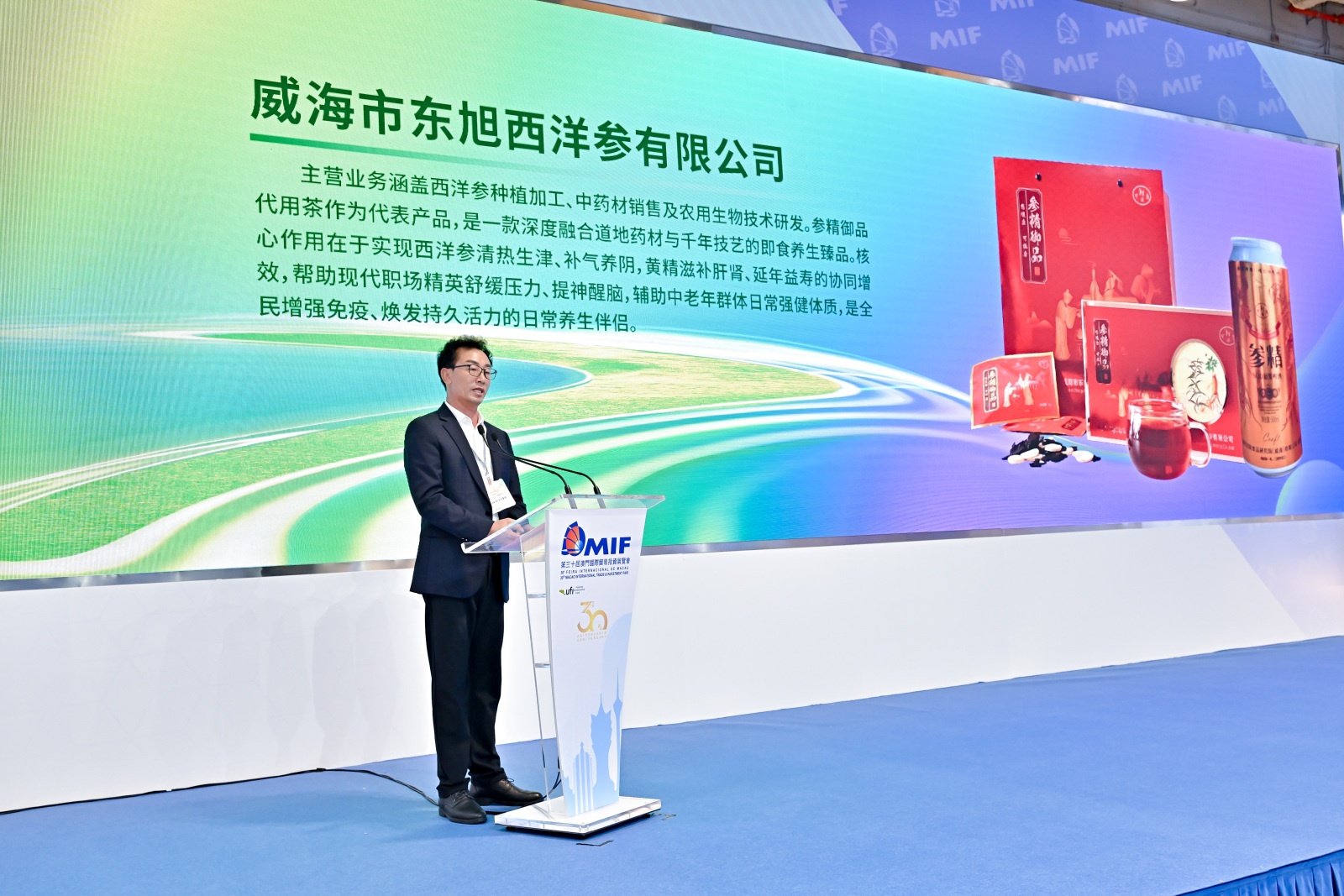 威海市东旭西洋参有限公司董事长杨树立进行参精系列产品推介。