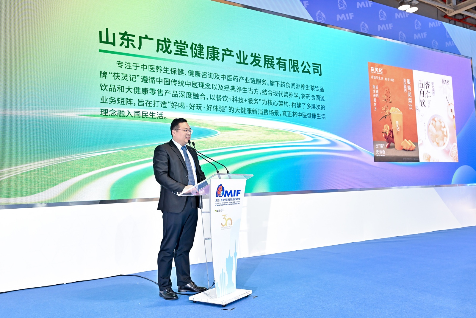 山东广成堂健康产业发展有限公司市场总监赵昆进行药食同源茶饮产品推介。