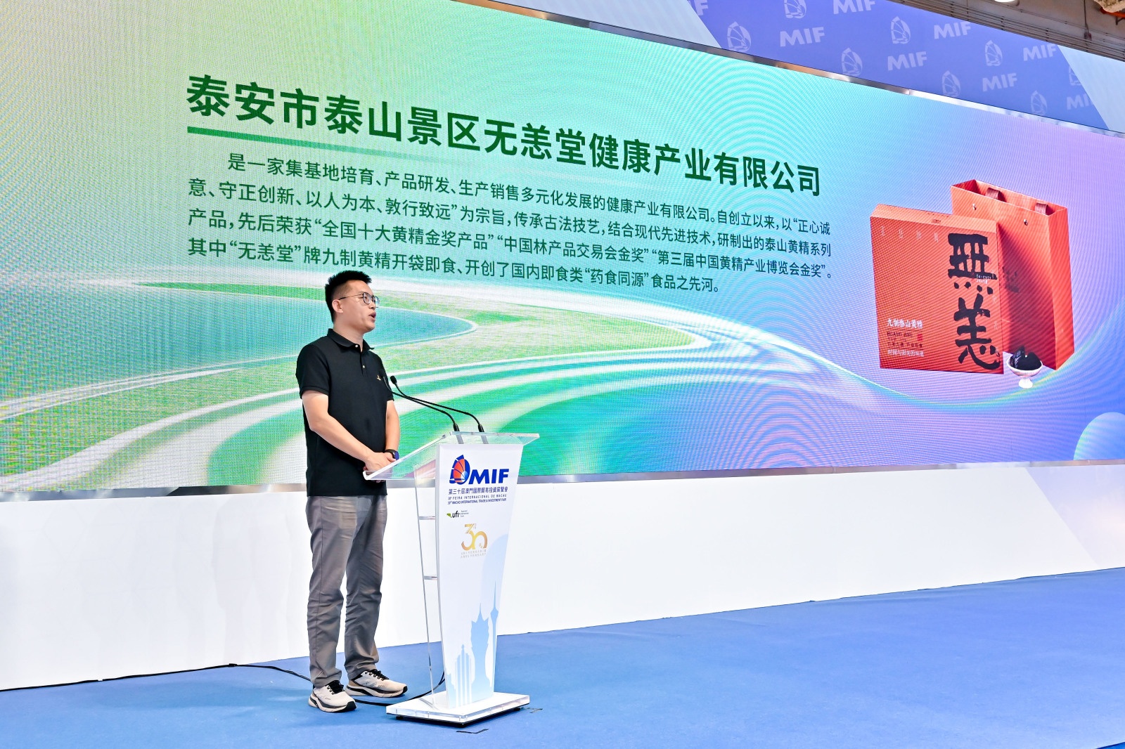 泰安市泰山景区无恙堂健康产业有限公司总经理刘敬军进行泰山黄精系列产品推介。