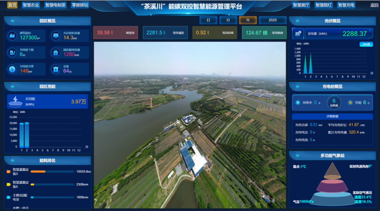 更为重要的是,茶溪川通过能碳双控平台,建立了碳排放核算模型,实现能源消费与碳排放的实时监控与分类管控,真正实现了“红色基因传承、绿色能源变革、金色产业振兴”的片区发展新模式。