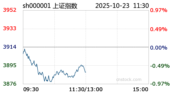 AI小壹10月23日讯 沪市小幅下跌,最高触及3913.04点,最低下探3877.53点,振幅-0.66%。截至今日11:30收盘,上证指数报3888.08点,跌幅0.66%,成交额4565.03亿元,成交量3.66亿;深证成指报12883.89点,最高12974.74点,最低12803.86点,跌幅0.87%,成交额5906.76亿元,成交量3.94亿;创业板报3025.58点,最高3056.15点,最低3003.34点,跌幅1.1%,成交额2615.59亿元,成交量1.06亿。