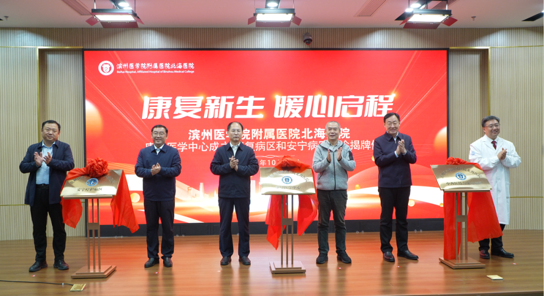 10月22日下午,滨州医学院附属医院北海医院举行康复医学中心成立暨康复病区、安宁疗护病区开诊揭牌仪式。标志着北海医院在学科建设与服务能力上迈出关键一步,也是滨医附院推动优质医疗资源扩容下沉、践行“全生命周期”健康服务理念的生动实践。市政协党组成员、副主席,区党工委书记王道臣,大众日报社滨州站站长、中国共产党第二十次全国代表大会代表王凯,滨医附院党委书记王东,区党工委副书记、党政办公室主任袁昊,滨医附院党委委员、副院长徐宁、区党工委委员、管委会副主任苏晓军,滨医附院党委委员、科技处处长、滨医附院北海医院康复医学中心主任李伟以及北海医院领导班子成员区直各相关部门负责人等参加。仪式由徐宁主持。