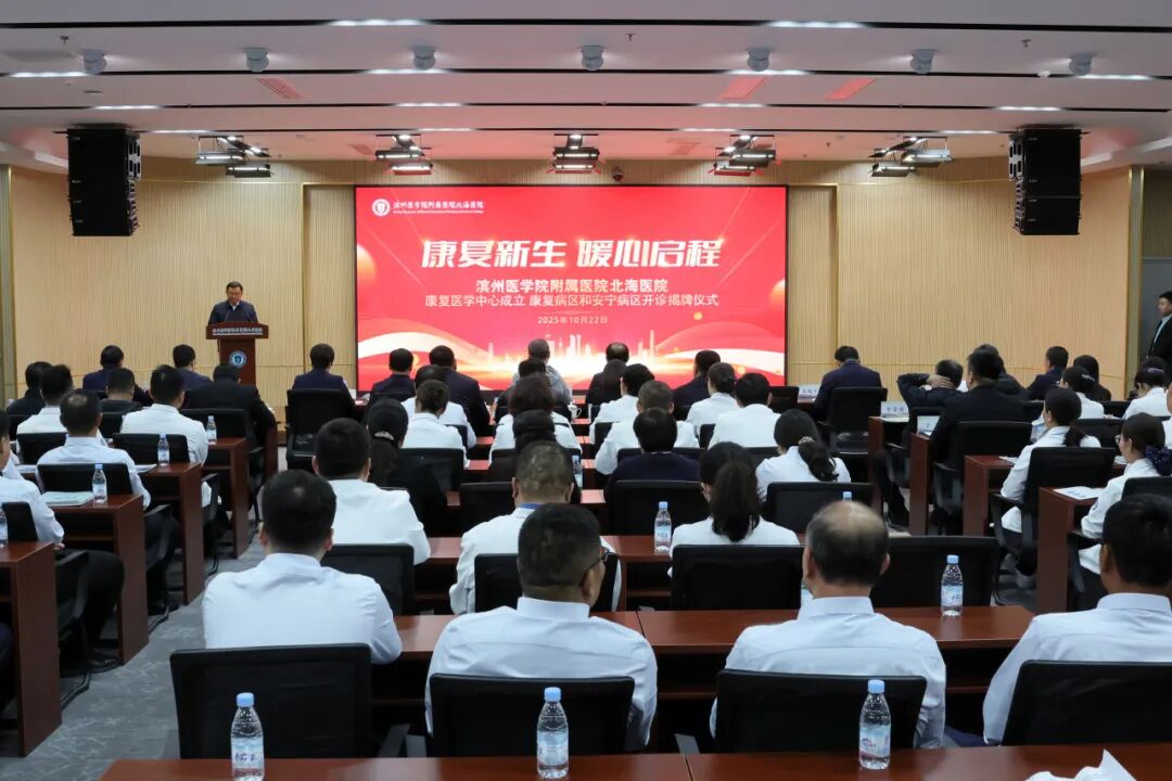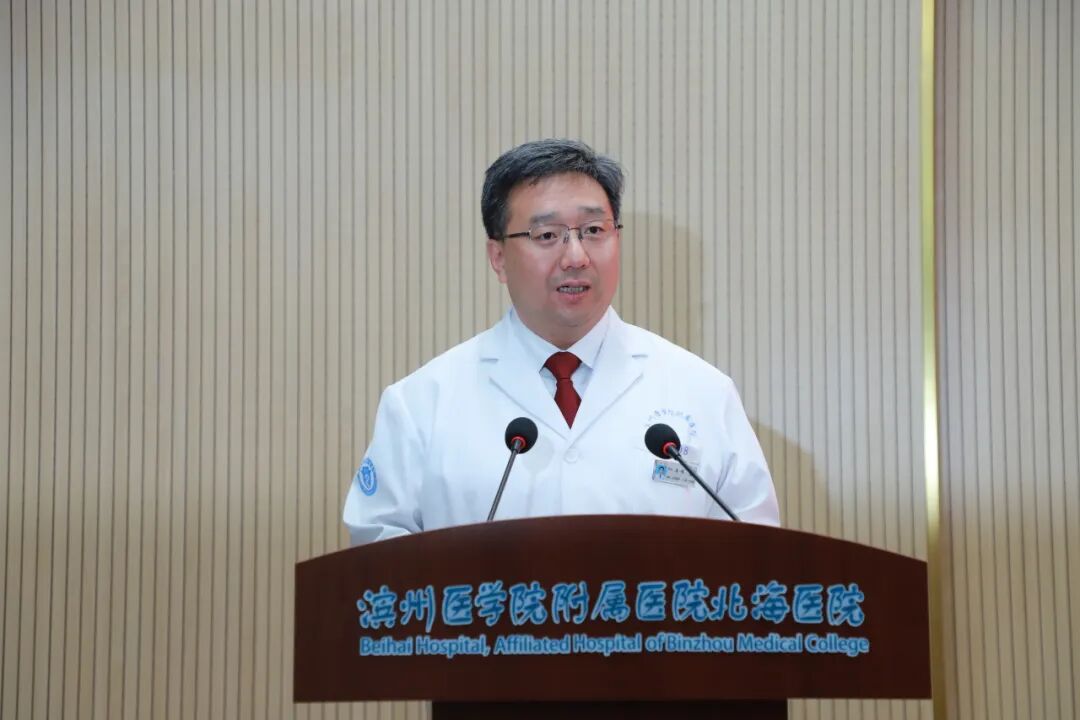 王东在致辞中指出,康复医学与安宁疗护不仅关乎生命质量与尊严,更体现医学的人文关怀与温度。他强调,发展康复医学与安宁疗护是公立医院响应国家号召、顺应时代发展、践行以人民健康为中心的责任担当。为此,滨医附院将进一步加大对北海医院的战略支撑,确保其能坚定不移走高质量发展之路,通过坚持高标准建设、推进特色化发展、强化区域协同、彰显人文关怀,将康复医学中心建设成为技术精湛、服务优质、管理卓越的区域领先专科中心,为增进人民健康福祉、助力健康中国建设贡献力量。