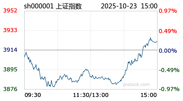 AI小壹10月23日讯 沪市小幅上涨,最高触及3926.22点,最低下探3877.53点,振幅0.22%。截至今日15:00收盘,上证指数报3922.41点,涨幅0.22%,成交额7189.31亿元,成交量5.65亿;深证成指报13025.45点,最高13042.34点,最低12803.86点,涨幅0.22%,成交额9249.78亿元,成交量6.15亿;创业板报3062.16点,最高3066.46点,最低3003.34点,涨幅0.09%,成交额4079.49亿元,成交量1.69亿。