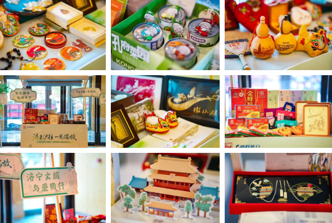 会场外精心设置的“济宁文旅图片展”“文创商品展”成为本次推介会的一大亮点,百余件济宁非遗精品、文博衍生品、地方风物集中亮相,吸引众多嘉宾驻足。微山湖旅游集团带来的芦苇画、土琵琶木梳、莲子手串等产品,以精巧工艺展现湖区生态之美;峄山景区推出的“独占鳌头”钥匙扣与礼遇峄山冰箱贴,寓意吉祥、造型别致;盛创文化带来的“萌礼夫子”系列文创及“漫游济州”主题产品,以现代设计语言诠释儒家文化精髓,展现传统与创意的完美融合;三孔文旅则呈现商周十供盲盒、大成殿挂坠冰箱贴、线装论语等系列产品,兼具文化内涵与实用功能;玉堂酱园琥珀花生等老字号特产以新包装亮相,凸显“济宁味道”的传承与创新。众多嘉宾沉浸于琳琅满目的展品中,对融合传统与时尚的济宁文创商品爱不释手,现场交流气氛热烈。