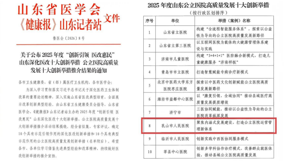乳山市人民医院入选山东公立医院高质量发展十大创新举措