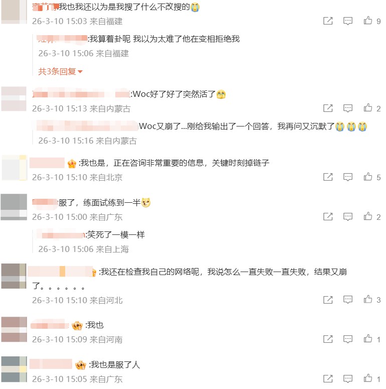 3月10日,DeepSeek服务确实出现了大规模访问异常,网页端和App频繁弹出"服务器繁忙"提示,导致用户使用集体受阻,相关话题半小时内冲上热搜。