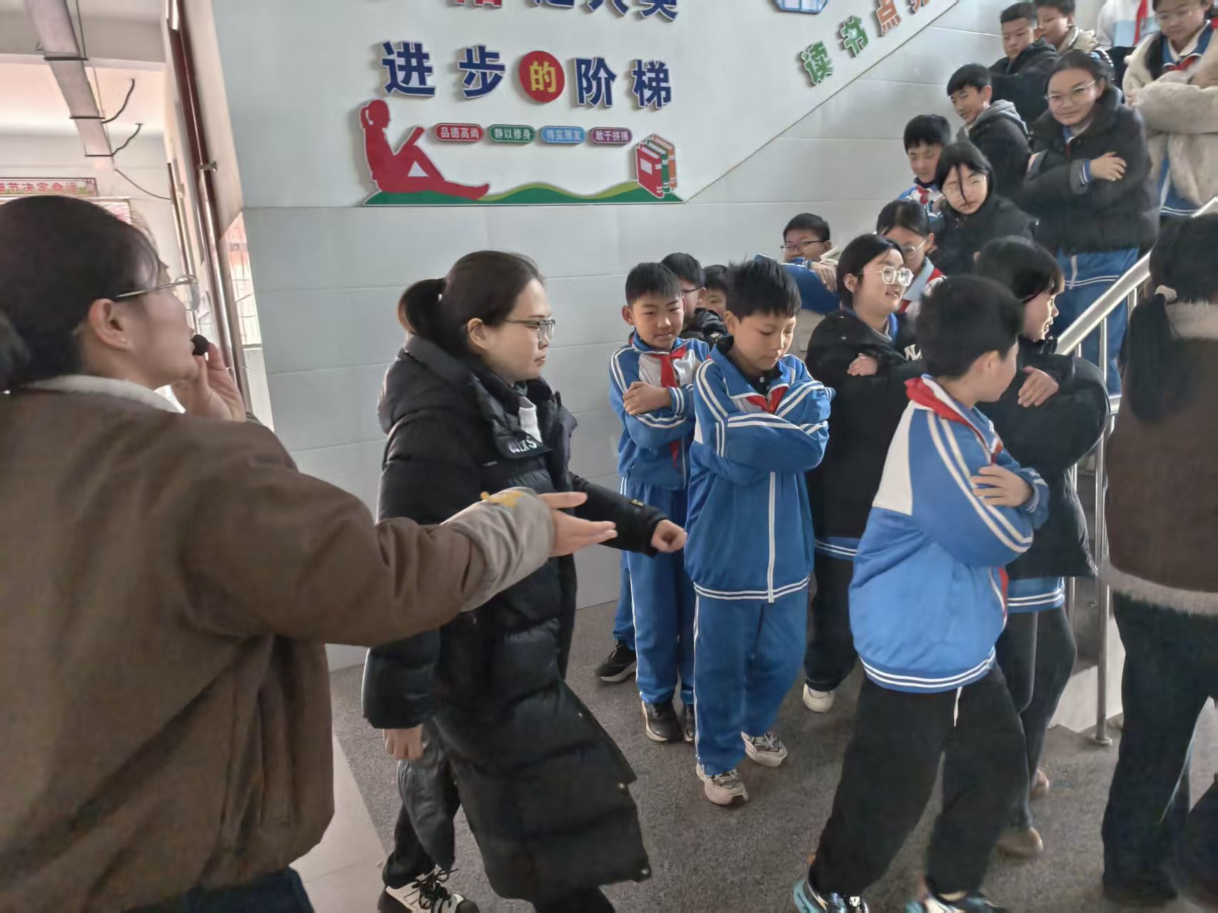 演练开始前,各班班主任对学生进行了细致的安全教育,明确演练流程与纪律要求,着重强调:疏散过程中绝不能推搡、奔跑,必须在走廊和楼梯间缓慢有序行进。