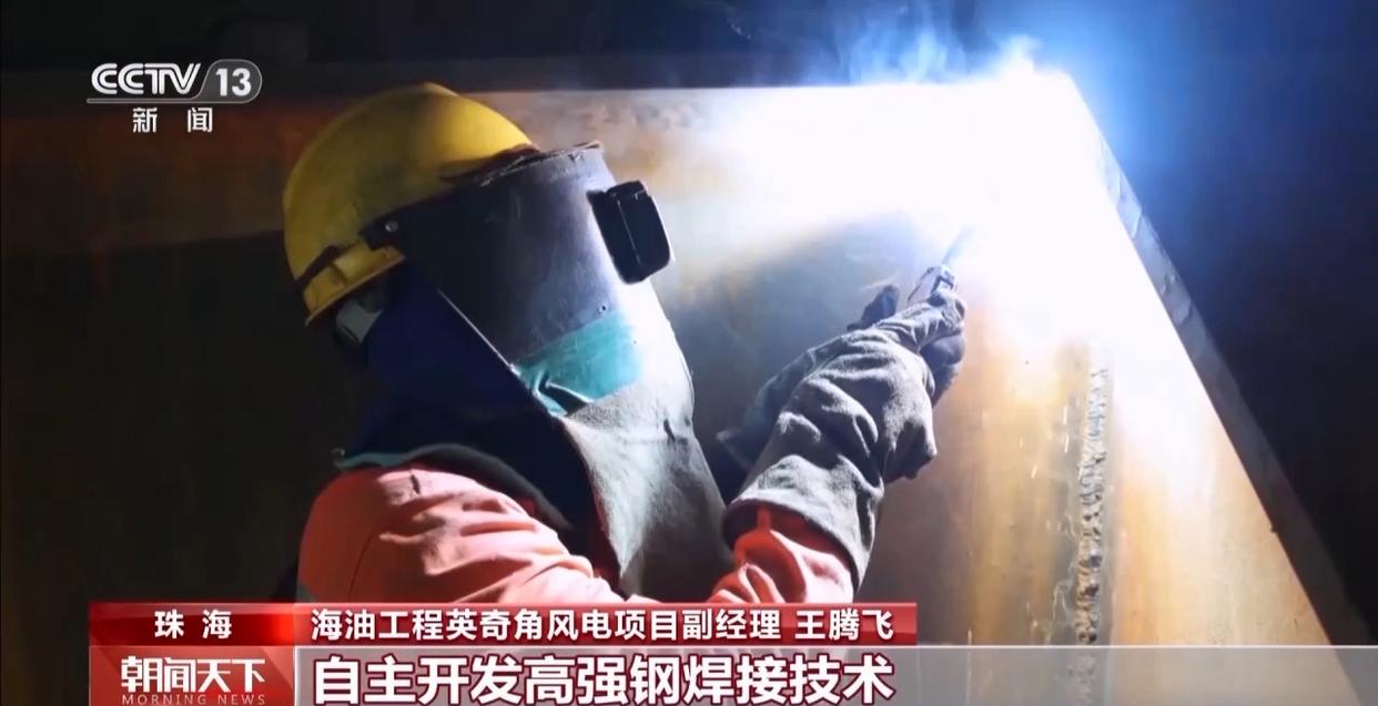 海油工程英奇角风电项目副经理 王腾飞:作为我国首次建造的国际钢桩式风电导管架,建造工艺复杂。项目团队在全球首创风电导管架“侧V”建造工艺,实现液压软管零损伤,合龙精度达亚毫米级。自主开发高强钢焊接技术,实现焊接一次合格率超过99%。