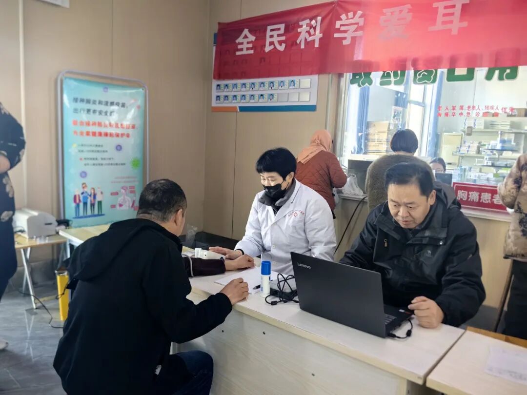 为切实服务群众健康,本次义诊提供多项免费检查项目,包括血压、血糖测量、乳腺、甲状腺、妇科彩超检查以及耳部检查。检查过程中,医务人员帮助群众及时了解自身健康状况,解答关于听力下降、耳鸣、耳部不适等问题,并耐心讲解日常护耳知识,给予个性化的健康指导,增强疾病早筛早诊意识。