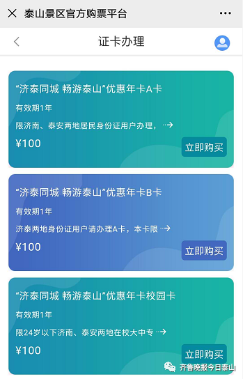 济南市民可以100元/人办理泰山游览年卡,9月1日发行