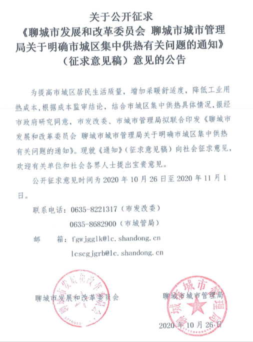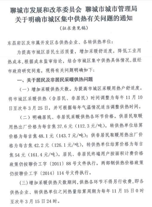 随着天气变冷,供暖问题备受市民关注。10月29日,记者获悉,聊城发布关于公开征求《 聊城市发展和改革委员会 聊城市城市管理局关于明确市城区集中供热有关问题的通知》(征 求意见稿)意见的公告(以下简称公告),拟将市城区采暖供热(含居民、非居民)时间调整为每 年11月10日至次年3月25日,与往年11月15日到次年3月15日相比,不仅提前5天供暖,供暖时间增加了15天,而且取暖费用不变。