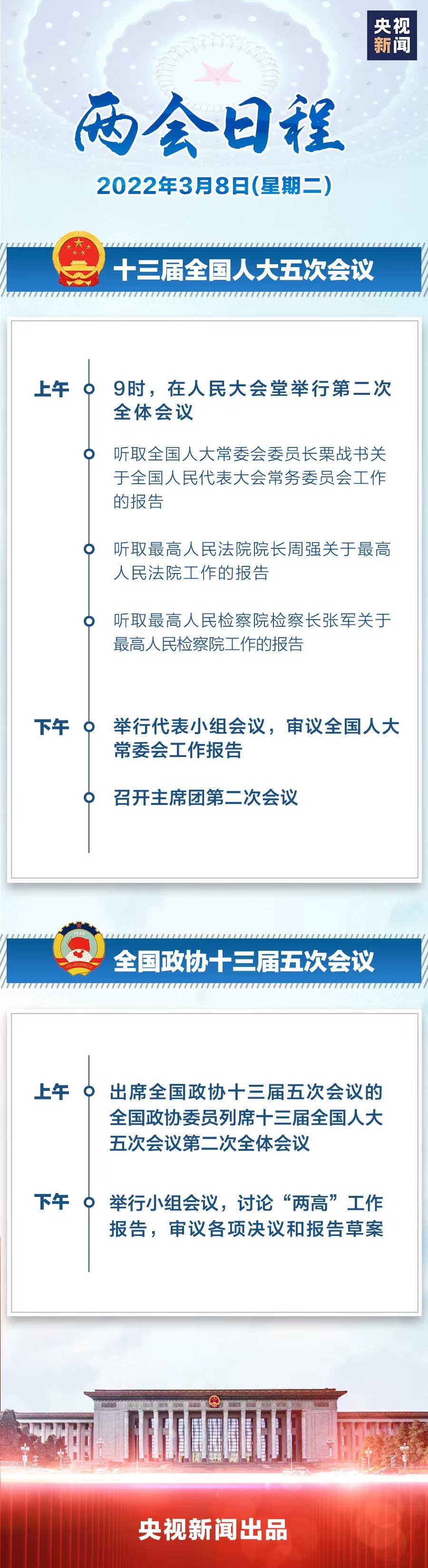 两会日程丨3月8日:全国人代会举行第二次全体会议