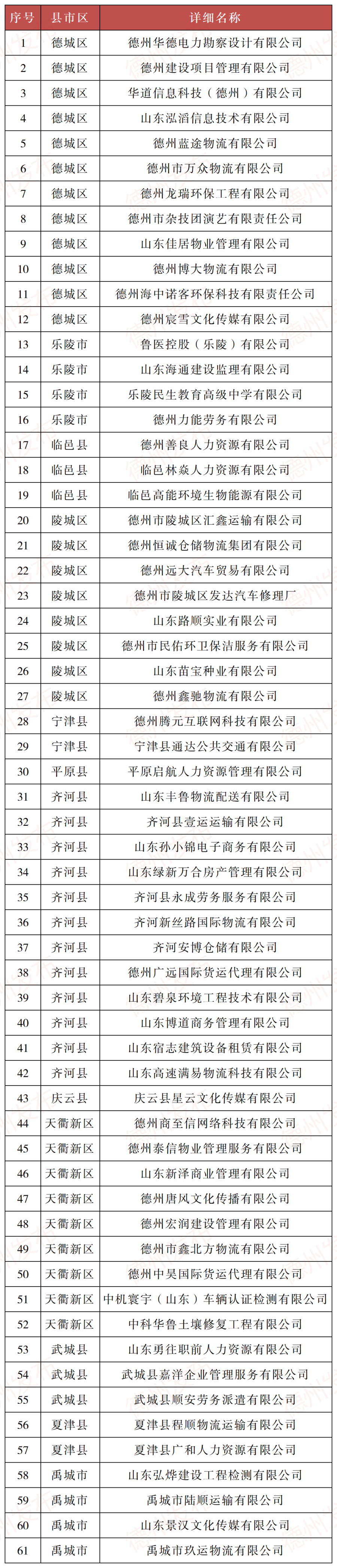 根据《德州市人民政府办公室关于印发2022年德州市助企发展政策清单(第二批)的通知》(德政办发〔2022〕4号)要求,拟对2021年年度新增且按时依法报送数据1年以上的规上服务业企业和2022年月度新增规上服务业企业兑现奖励政策,现将名单予以公示。