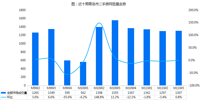 岛城上周二手房成交数据出辘。据青岛贝壳研究院统计,上周(11月13日~19日),岛城二手房网签量为1307套,环比微涨0.77%。西海岸新区成交473套,稳居全市首位。100~140平米的改善面积段房源成交比重涨幅较大。排在成交量前三位的热搜楼盘为维多利亚湾、鲁信长春花园、海尔山海湾,次新小区青铁华润城上榜。
