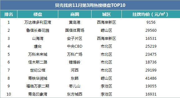 上周全市热搜楼盘前10名中,市北区便占据了4个。排在前三位的热搜楼盘有维多利亚湾、鲁信长春花园、海尔地产山海湾,三个项目挂牌均价分别为9156元/平米、29560元/平米和16531元/平米。值得注意的是,次新小区青铁华润城于本周上榜,挂牌均价为41486元/平米,排在第8位。