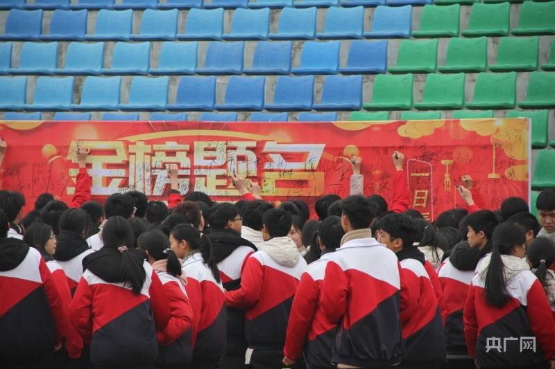 高三学子在“金榜题名”展牌上签名(石柱回龙中学校供图)