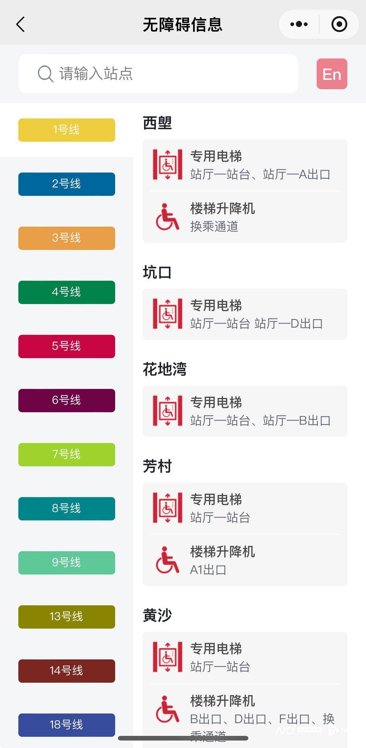 “广州地铁乘车码”微信小程序上新无障碍信息查询功能。