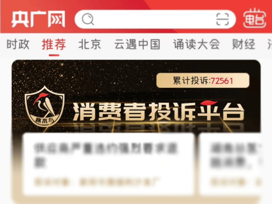 更多精彩资讯请在应用市场下载“央广网”客户端。欢迎提供新闻线索,24小时报料热线400-800-0088;消费者也可通过央广网“啄木鸟消费者投诉平台”线上投诉。版权声明:本文章版权归属央广网所有,未经授权不得转载。转载请联系:cnrbanquan@cnr.cn,不尊重原创的行为我们将追究责任。
