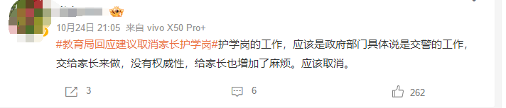 有的网友认为,家长护学岗没有权威性,给家长也增加了麻烦,应该取消。