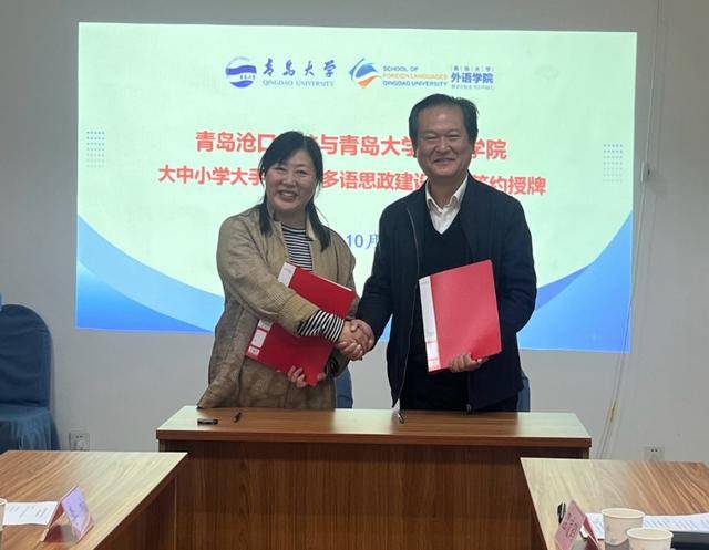 青岛沧口学校与青岛大学外语学院 大中小学大手拉小手研训基地签约授牌仪式举行