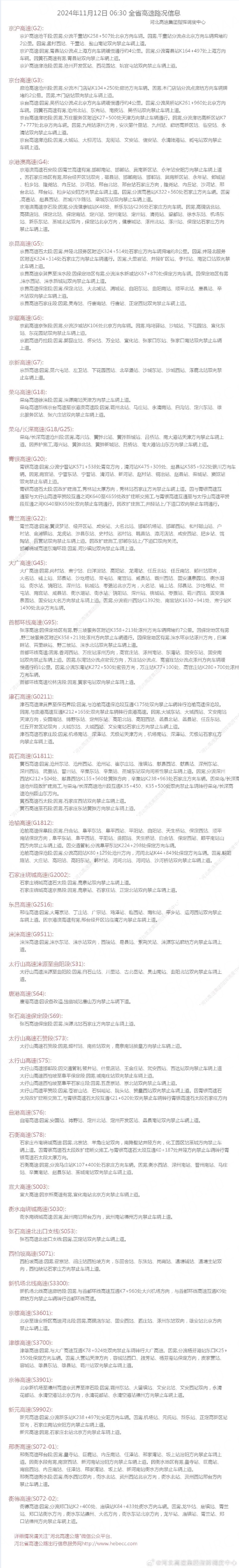 石家庄辖区:因雾,【黄石高速】间断管控车辆,其余站口关闭。【京昆高速】在省界分流西行车辆,后方缓行2公里。
