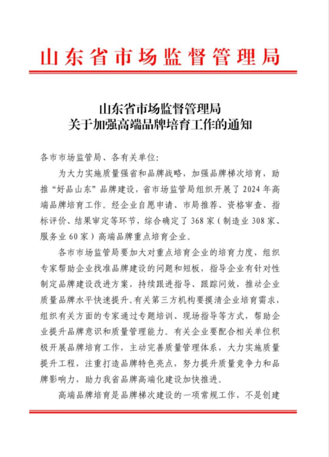 12月10日,山东省市场监管局公布2024年度山东省高端品牌培育企业名单,淄博25家企业入选,其中制造业22家,服务业3家。截至目前,全市共有山东省高端品牌培育企业129家。