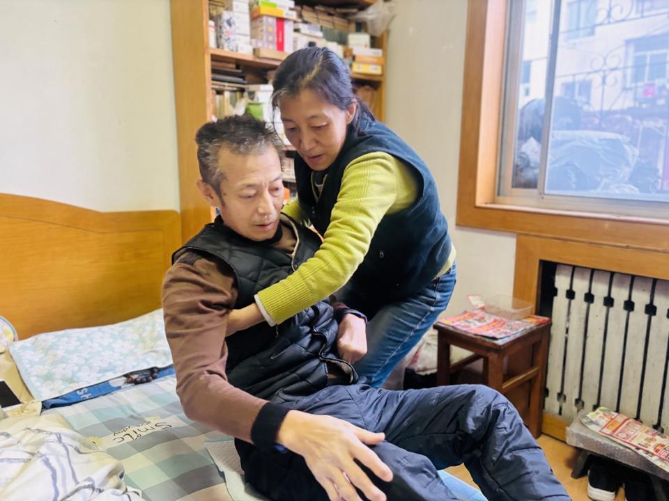 姜春荣把家中唯一的卧室改造成病房,床头贴着用药时间表,桌上摆满护理书籍。每天清晨5点起床,为哥哥擦洗身体、更换衣物,处理因腹泻血便弄脏的床单被褥……从饮食到作息,再到生活琐事,桩桩件件都被她安排得井井有条。每天这样忙活着,很快就等到太阳西沉,姜春荣也没有“下班”,夜深人静时,她又打开台灯开始查阅资料,学习按摩护理知识,从基础的人体穴位学起,一点点摸索如何通过按摩促进哥哥的血液循环,以减轻哥哥卧床的痛苦。