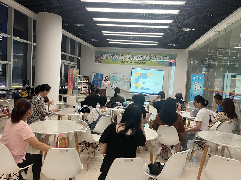 由潍坊市文旅和旅游局指导创立的文化惠民项目潍坊市民艺术夜校,以“夜校+”模式,多元化融入学习、互动、职业提升、副业拓展等内容,多维度开启潍坊有“知”有“味”夜生活。链接导入了社会组织、文体机构等社会资源,双向定制市民喜爱的课程内容,推出了“公益体验+普惠系列”课程模式。同时,还组织主题沙龙活动、户外探索、非遗体验、露营“轰趴”等好玩新潮的活动项目,带市民探索更多生活中有趣的可能性。同时,艺术文化课程的普及与丰富,也在众多市民的心里不断加深了对于本土文化的认同感与自豪感,在课程内容上,潍坊市民艺术夜校中有不少关于非遗的课程,而这些课程的讲师正是潍坊本地的非遗代表性传承人。