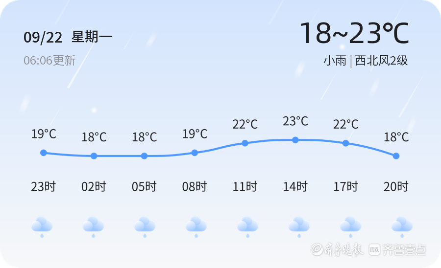 今日是2025年9月22日,星期一,农历八月初一。滨州迎来小雨天气,气温在18℃至23℃之间,西北风2级,空气湿度77%,空气质量为优。市民出行时建议携带雨具,注意保暖,同时保持视线清晰,确保行车安全。