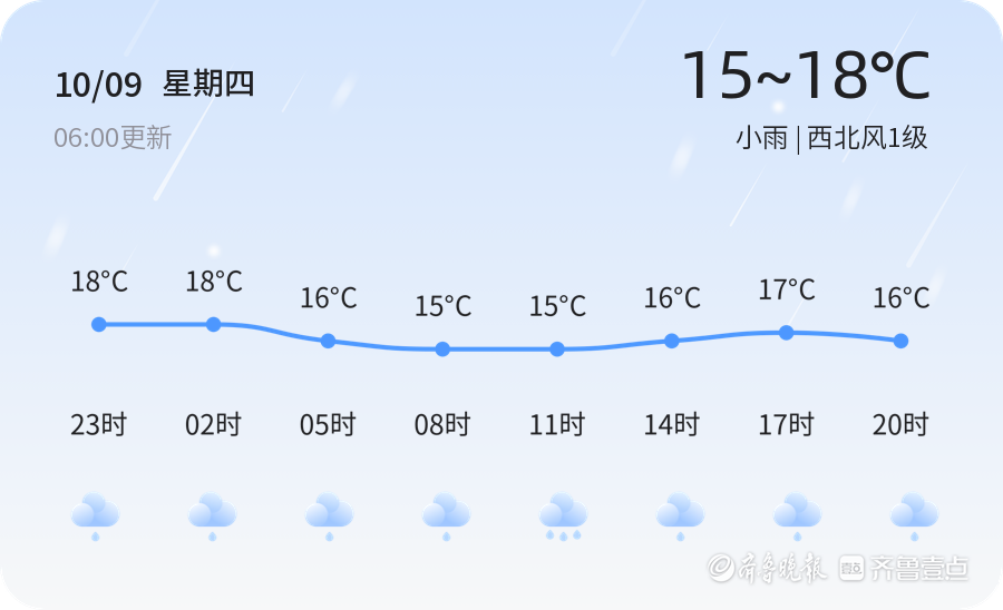 今天是10月9日,星期四,农历八月十八。淄博市今日天气以小雨为主,气温介于15℃至18℃之间,西北风1级,空气湿度达到100%。PM2.5浓度为29,空气质量状况为优。由于今天凌晨起淄博部分地区发布了大雾黄色预警,周村区和博山区大部分地区能见度较低,局部地区能见度小于200米,市民出行时请注意交通安全,特别是驾驶车辆时应减速慢行,保持车距,确保行车安全。此外,雨天路滑,行人和车辆应特别注意防滑,避免意外发生。未来三天,淄博市天气将持续以小雨为主,气温在15℃至18℃之间波动。预计明天和后天仍有小雨,局部地区可能出现中雨。同时,由于大雾天气可能持续影响部分区域,市民在出行时仍需关注天气预报,提前规划好行程,避免因大雾影响交通出行。特别是周村区和博山区的居民,应特别留意大雾对交通的潜在影响。温馨提示