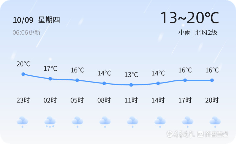 据气象部门预测,明天菏泽市仍将维持小雨天气,气温较今日有所下降,预计最低气温12℃,最高气温16℃,风力依旧较小,北风2级左右。连续的阴雨天气提醒市民出行需携带雨具,注意防寒保暖。