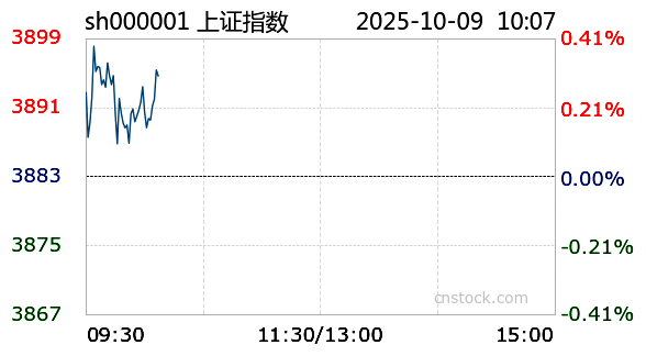 AI小壹10月9日讯 沪市小幅上涨,最高触及3898.71点,最低下探3885.74点,振幅0.41%。截至10:00,上证指数高开3898.54点,涨幅0.41%,成交额4693.7亿元,成交量2.82亿;深证成指报13632.39点,最高13656.48点,最低13565.29点,涨幅0.78%,成交额5577.32亿元,成交量3.22亿创业板报3263.02点,最高3278.78点,最低3243.71点,涨幅0.77%,成交额2512.83亿元,成交量9034.3万