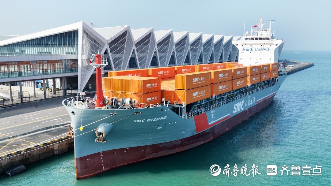 10月16日,在中韩共同推动下,韩国济州历史上首条国际集装箱定期班轮航线——“青岛—济州”集装箱航线在青岛邮轮母港首航,将实现青岛至济州的直达连接。这是落实山东省高水平对外开放战略的务实举措,将搭建起以现代航运连接中韩经贸与人文的新桥梁。