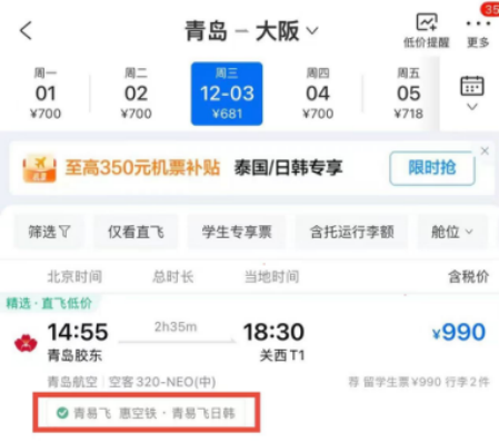 即日起至2025年12月31日,青岛机场“青易飞 惠空铁”系列空铁联运福利持续放送,当日乘高铁来青岛机场搭乘国内及国际(含地区)航班出行的旅客(始发及到达城市具体站点),在实现“一次购票、一次支付”的同时,可享受高铁/动车二等座/城际票价最高直减80元优惠,往返均适用。旅客只需在携程APP机票频道输入高铁出发城市与航班最终目的地,系统将自动推荐包含“飞机+火车”的联运方案,选择并认准带有“青易飞 惠空铁”专属标识的班次,其显示价格即为已立减后的优惠价格。(温馨提示:高铁班次及中转航线持续更新,数量有限,请以携程实时查询为准。)