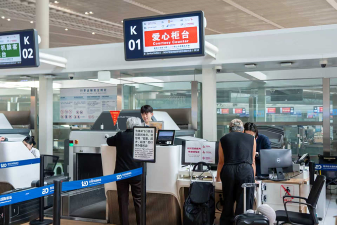 u优先办理乘机手续:工作人员主动引导老年旅客至K01爱心柜台,快速办理乘机手续,免去排队等待。