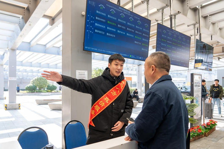 在安检环节,青岛机场设有功能性通道并配备轮椅、助行器等设备;在航站楼内,“我帮您”绿马甲志愿者随时为老年旅客提供搬运行李、换乘引导、政策讲解等暖心服务;在综合交通中心,开展“暖心服务搭把手”行动,在停车楼及客运站提供全流程协助——搬运行李、引导路线、帮助购票候车,确保“最后一公里”同样安心顺畅。