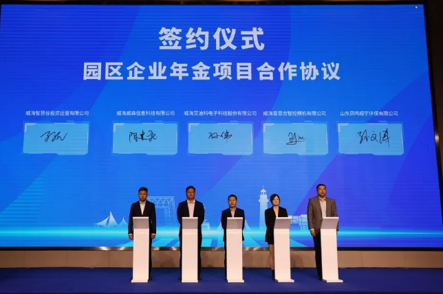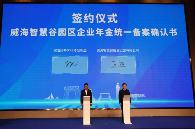 威海智慧谷园区管理方与8家建立园区企业年金的企业签订协议,与中国人寿保险股份有限公司威海分公司签订威海智慧谷园区集合年金合作协议。威海经济技术开发区科技创新局与威海智慧谷园区管理方签订威海智慧谷园区企业年金统一备案书。据统计,目前,智慧谷园区首批加入企业年金计划的企业23家,覆盖员工近400人。