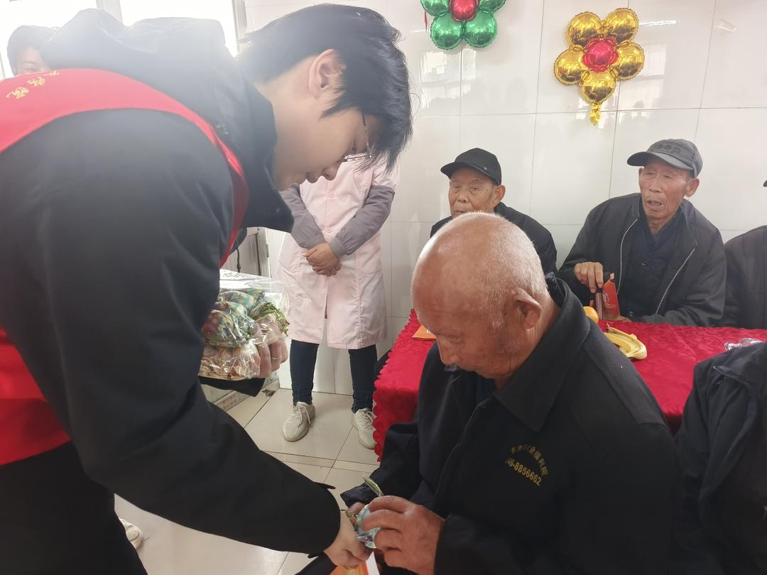 菊香盈袖,又逢重阳。为弘扬中华民族“尊老、敬老、爱老、助老”的传统美德,增强社会对老年人群体的关爱与尊重,10月29日重阳节当天,牛庄镇孺子牛志愿联盟、东营手拉手爱心服务团队、山东石油化工学院石油工程学院小水滴爱心志愿者服务队与学生第二党支部联合东营农商银行牛庄支行走进东营区社会福利中心,组织开展“情暖重阳,爱满心间”的主题敬老活动,为东营区社会福利中心的老年朋友们送上温馨的节日关怀。